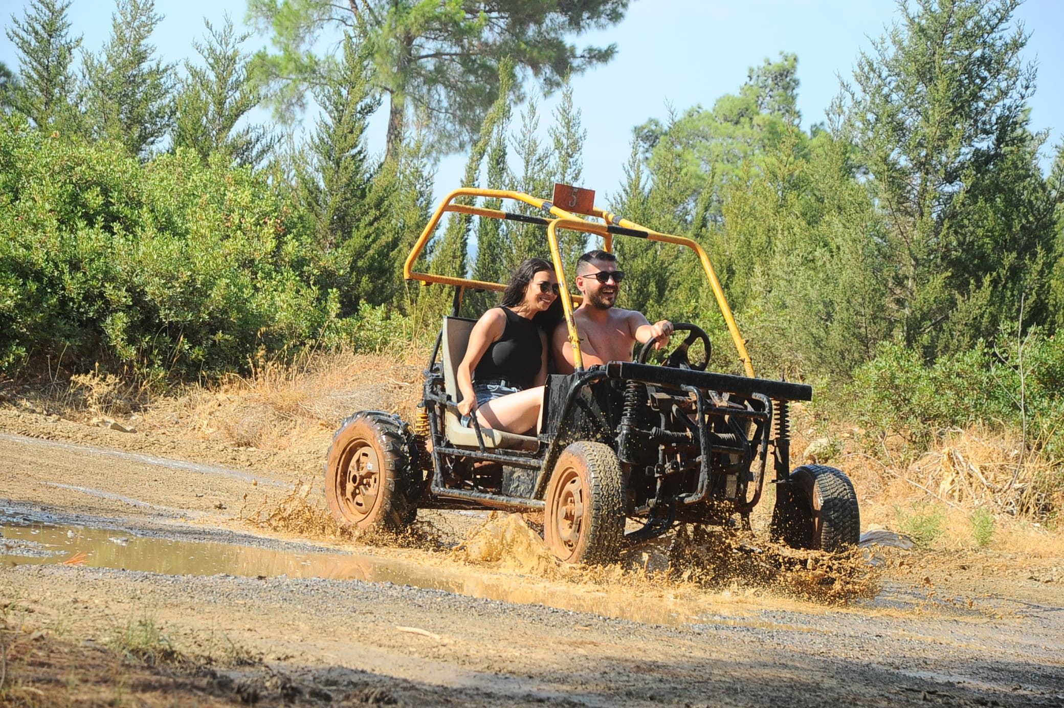 Quad-Buggy Safari Turumuz muhteşem çam ormanlarının içerisinde tamamı trafiğe kapalı alan içerisinde yaklaşık 75 dk sürer ve bu sürenin 15 dakikası mola ile geçmektedir.
